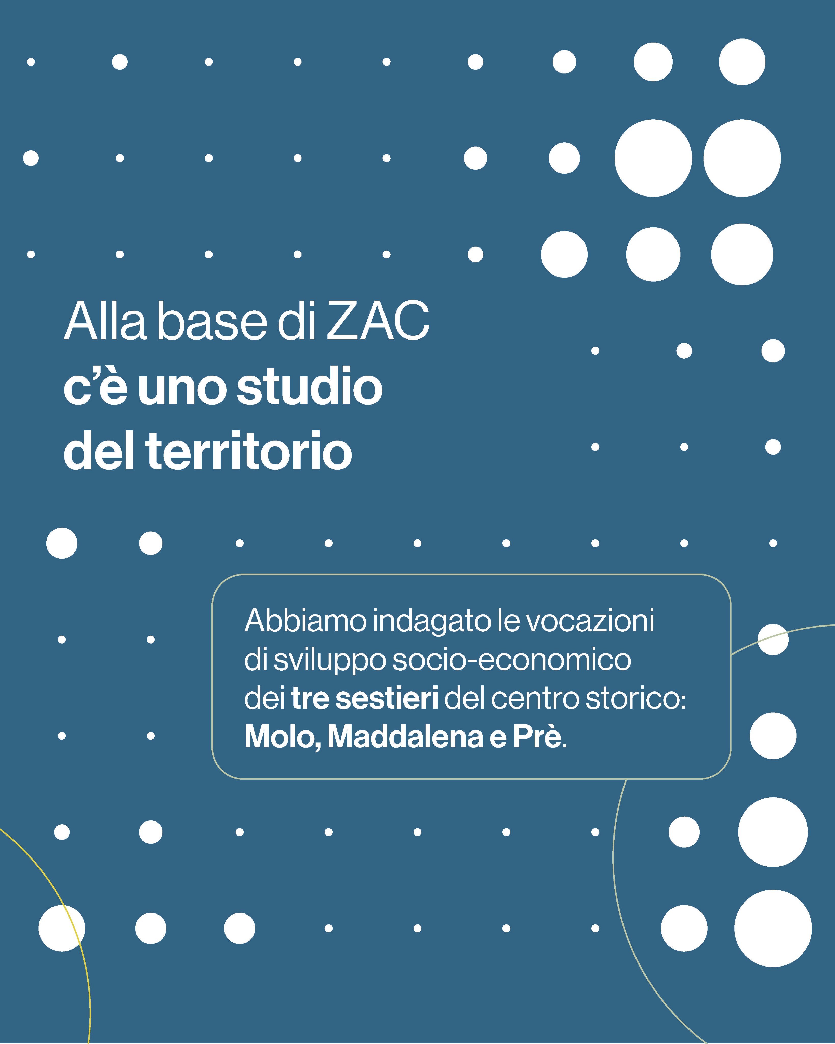 Il progetto ZAC prevede un focus territoriale sul Centro storico cittadino, in particolare sui Sestieri del Molo, della Maddalena e di Prè, in sinergia con altre misure, contribuendo alla rigenerazione urbana di quei territori, ove ci si attende di creare opportunità di sviluppo fortemente legate al contesto urbano.
