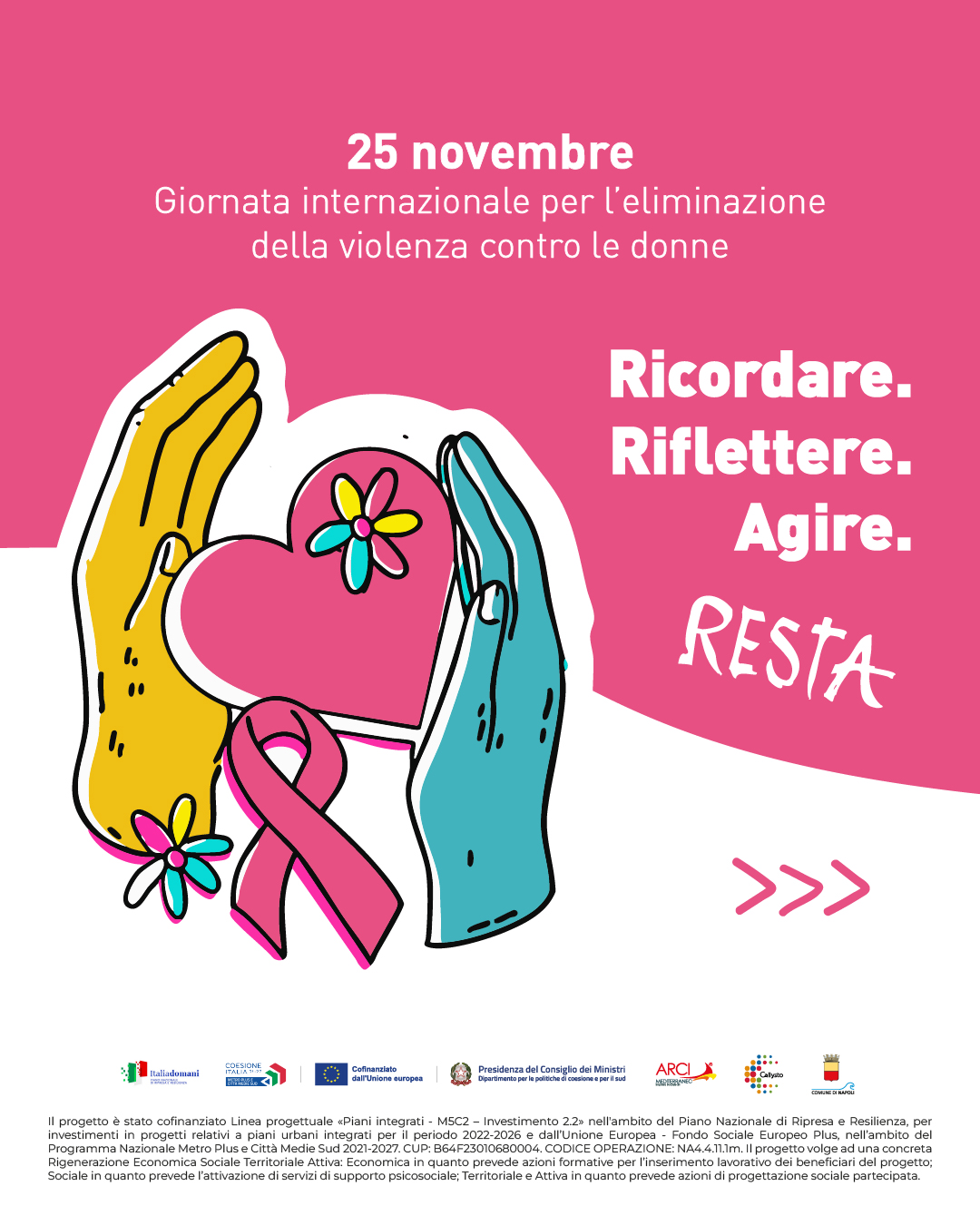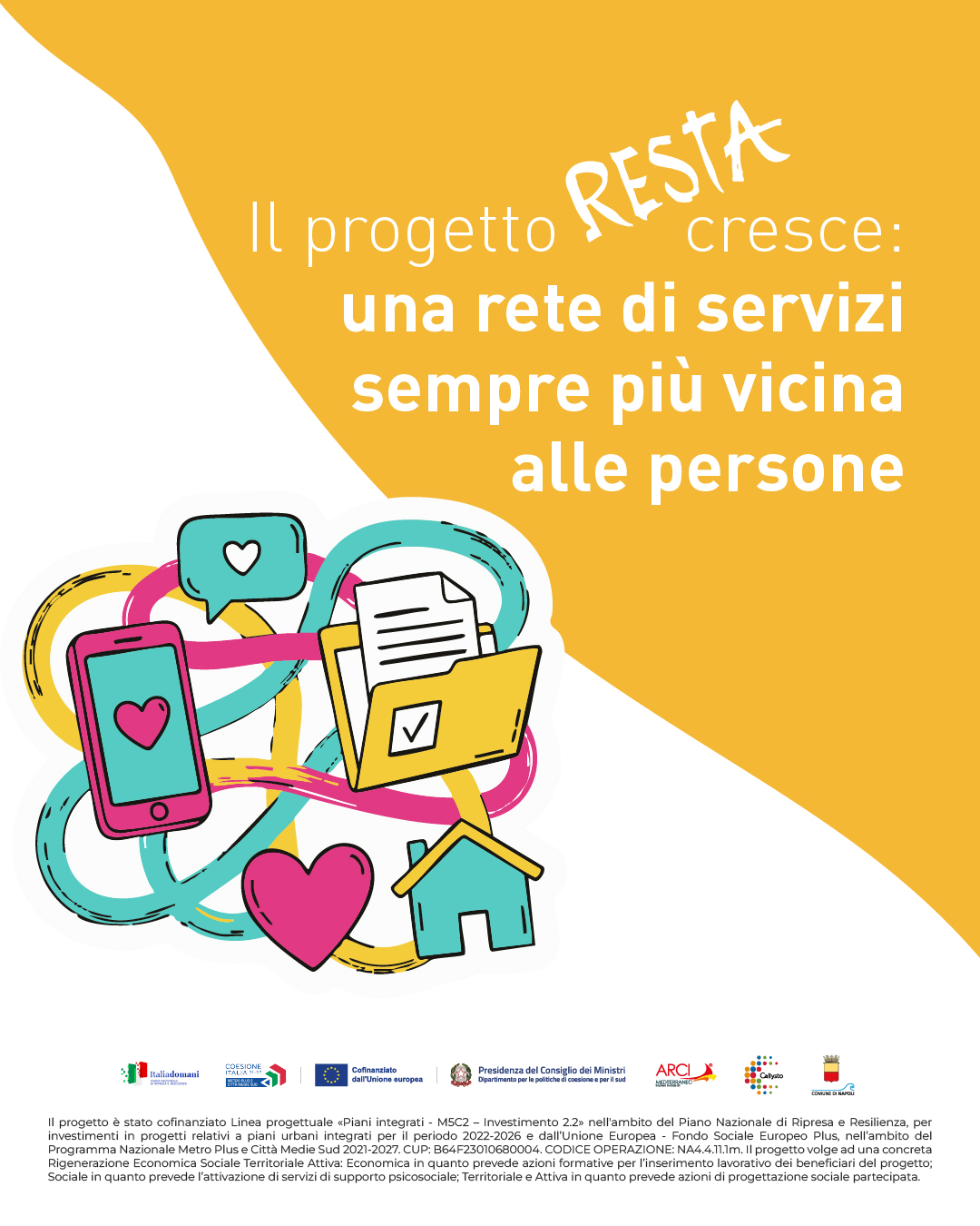 Il progetto R.E.S.T.A. - Rigenerazione Economica Sociale Territoriale Attiva nasce dalle esigenze emerse nel PNRR e, in particolare, nell’ambito del PUI  “Riqualificazione dell’insediamento di Taverna del Ferro” e vuole garantire un processo di rigenerazione urbana partecipativa, sostenibile e di contrasto alla povertà, riconoscendo il ruolo centrale del Territorio e delle Associazioni che, da anni, operano a favore degli abitanti beneficiari.